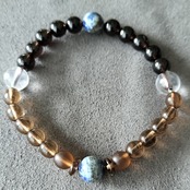 ラピスラズリを中心に、強力な浄化石モリオンとスモーキークォーツ、水晶を組み合わせたブレスレット。邪気を払い、心の迷いを晴らしながら直感力と判断力を高めます。真実の道へと導く強力な守護のお守りです。